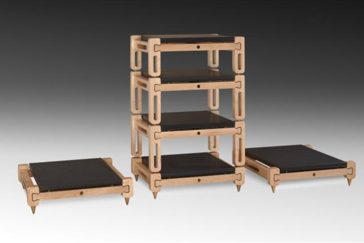 Each leg is cut from a single length of hard maple, ensuring the grain pattern flows seamlessly throughout the stand.