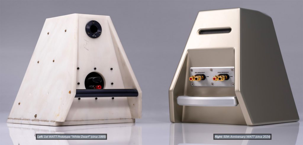 The rod handle on the rear of the original WATT was initially designed in 1985 as a practical way for David Wilson, founder of Wilson Audio and a recording engineer at the time, to transport his custom-made studio monitors to recording sessions.