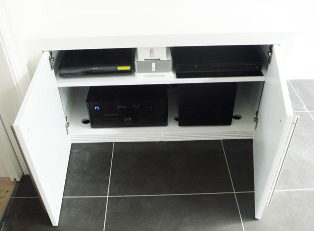 Their builders built a bespoke cabinet to our specification, within this cabinet are all the electronics power extension room and lounge.