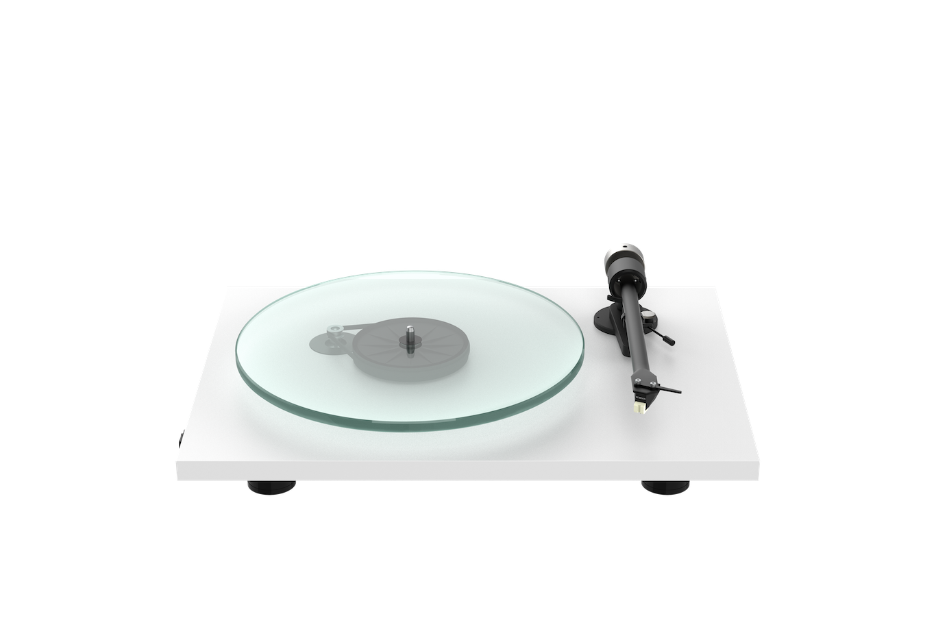 Mounted inside the plinth is a high-performance belt drive system featuring an electronically regulated, precision-speed AC motor, attached to Pro-Ject’s finely-engineered T-Line sub-platter, which is inserted into a stainless-steel axle/brass-bushing main bearing. The sub-platter drives the new heavy, zero-resonance glass platter with absolute stability, ensuring an ideal playback surface for vinyl records. Speed change is handled by a rocker switch for convenient switching between 33 and 45rpm.