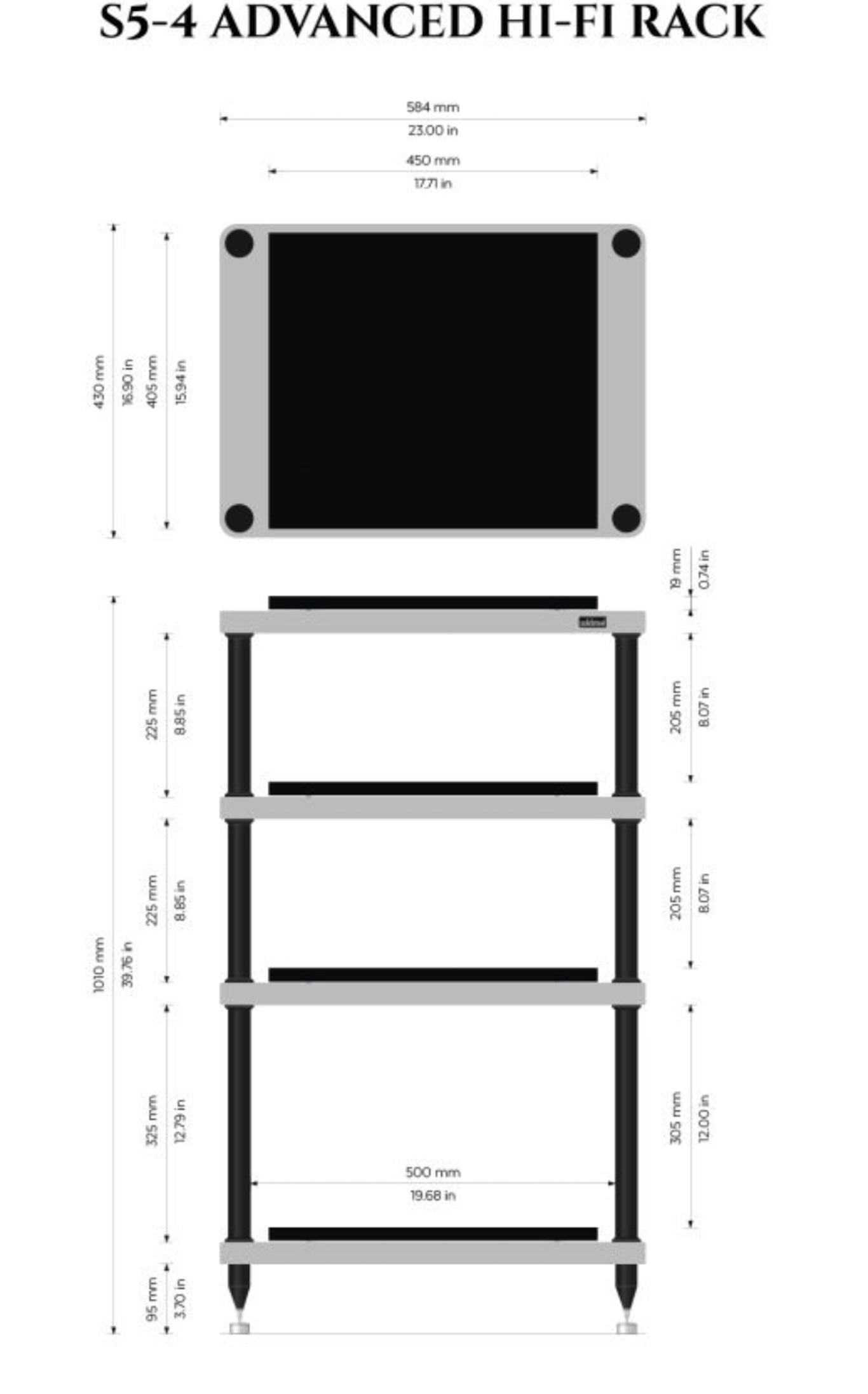 As with the S3 Series, the aluminium support tubes are internally filled with a non-granular damping material and secured through a robust fastening system that allows precise height adjustment. This modular construction enables users to customise shelf spacing at any time, adapting the rack to evolving system configurations while preserving optimal mechanical performance.